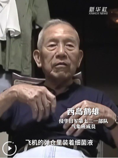 據新華社報導,第十二個南京大屠殺死難者國家公祭日前夕,侵華日軍第七三一隊(簡稱731部隊)罪證陳列館公布一段長38分鐘的視訊證言。 731部隊原隊員西島鶴雄揭露了這支部隊曾利用氣象資料實施被稱為「雨下實驗」的細菌播撒,以及凍傷活體實驗。