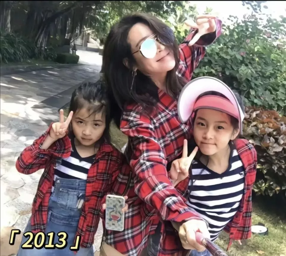 婚后于明加相继生了两个女儿(左边是小女儿早早,生于2010年,右边是大女儿萌萌,生于2008年)