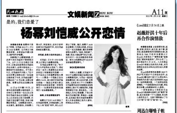 2012年,楊冪劉愷威公布戀情,熱到上了報紙。