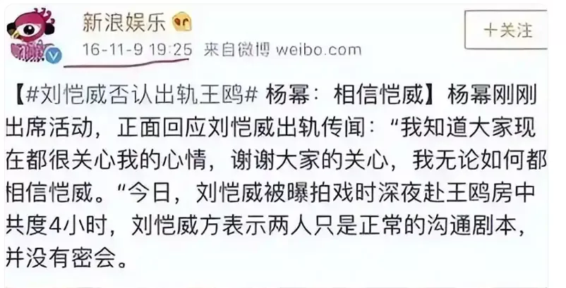 楊冪第一時間表示:「相信愷威。」