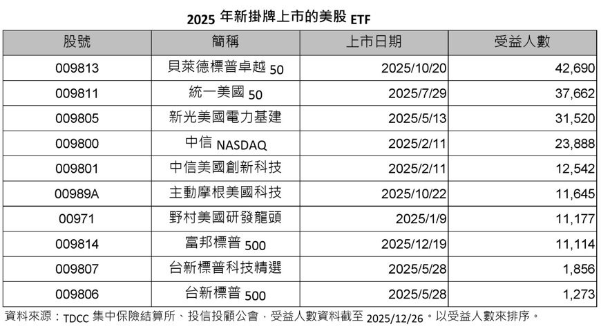 2025年新挂牌上市的美股ETF。(资料来源:TDCC集中保险结算所、投信投顾公...