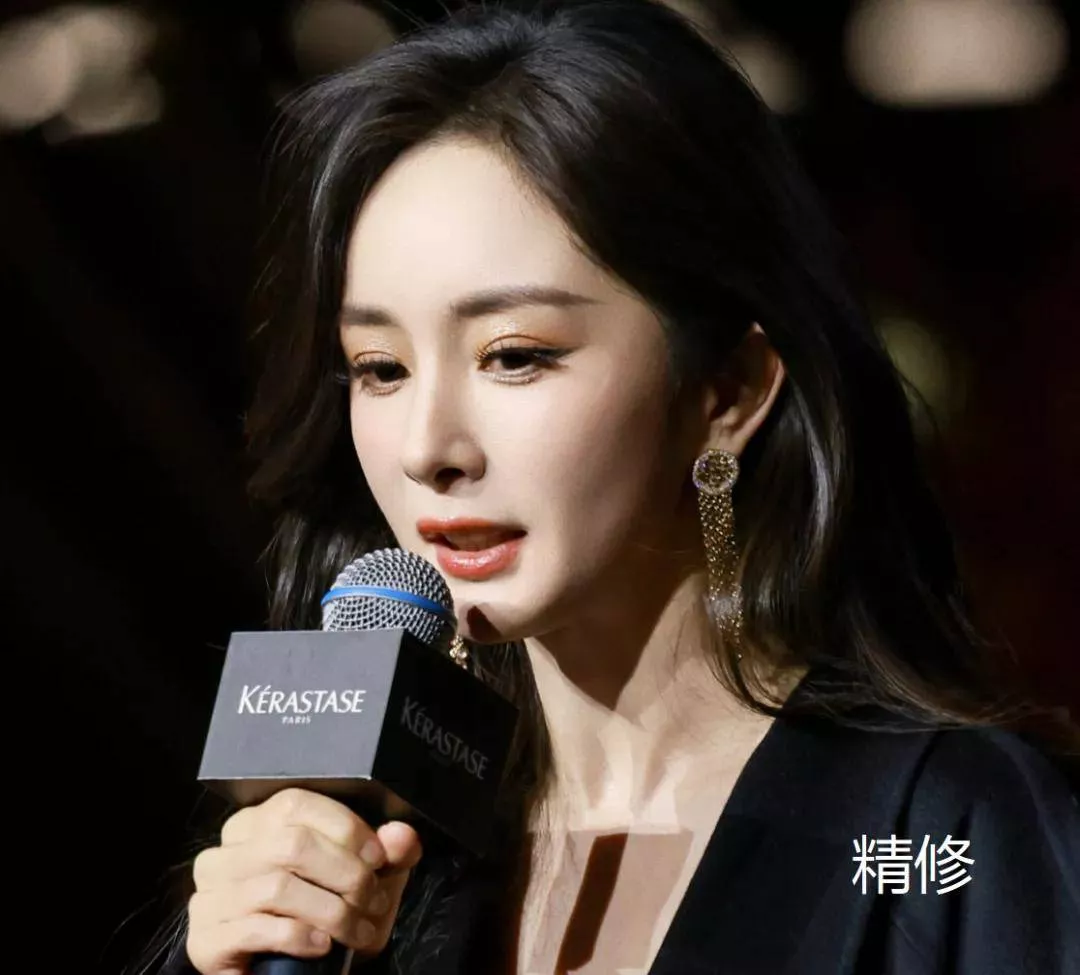 看了生图再看现场精修图,杨幂的五官立体度明显得到提升,大磨皮不仅削弱了肿胀感,眼窝、眉、鼻梁等层次感都变得更锋利。