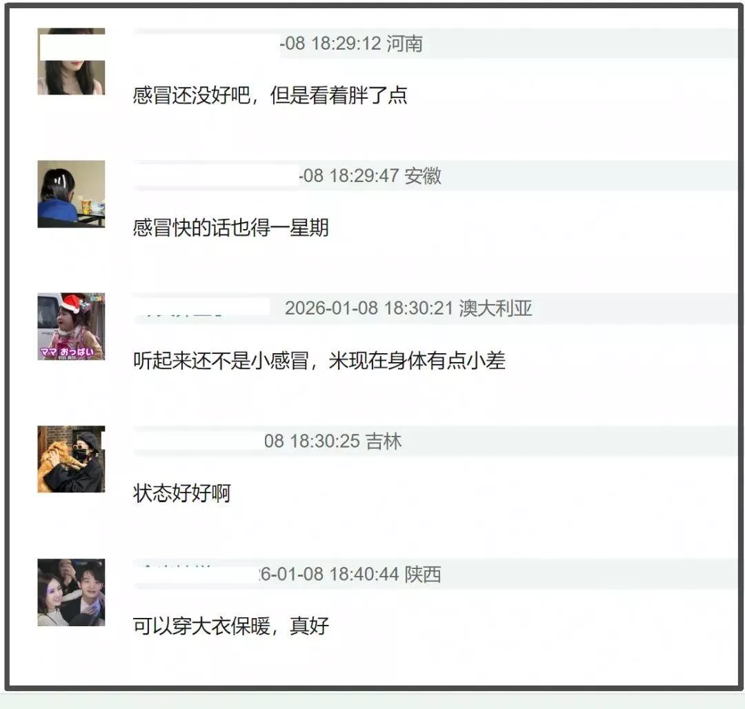 看到杨幂的状态,有网友表示可能是受感冒影响,导致面部出现了浮肿。还有现场的粉丝表示天气冷,杨幂一直披着大衣,为她的健康感到担心,毕竟感冒要好起来也需要时间。