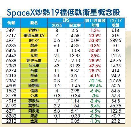 Google、亚马逊及中国也有这种太空卫星投资,升达科今年eps只有8元,打入低轨卫星通讯,飙到639元天价;而另外之前我介绍给会员的一档,新股莱德光电-KY也一路飙升到354元,频创天价,但12/17跌停,2天跌破300元;IET-KY创天价311.5元,这三档光通讯股与卫星通讯有关都创天价,华通有2成营收卫星板,也大涨。马斯克风云再起,有如送给股市圣诞礼物。